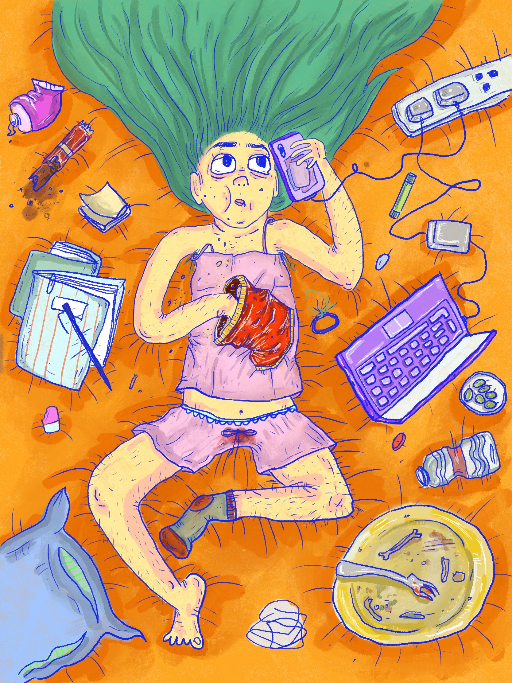Indulgences is a self-obsessed AR series depicting me in my good, bad and neutral period days. Through an ambivalent presentation of comfort, nostalgia, annoyance and pain, I draw on the familiarity of an experience related by anyone who has been blessed with the monthly consequences of shedding their uterus lining, in hopes to weave tongue-in-cheek connections with my fellow menstruators and breaking the stigma on social media.