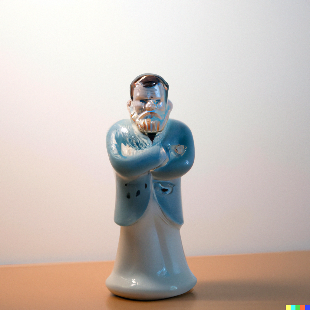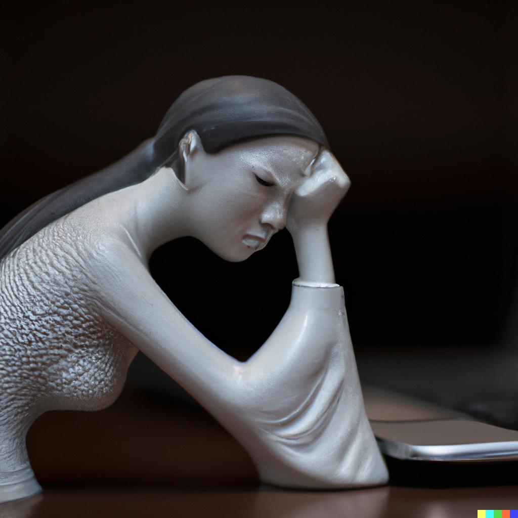I started with generating porcelain figurines of myself as a stressed-out person in front of a computer.