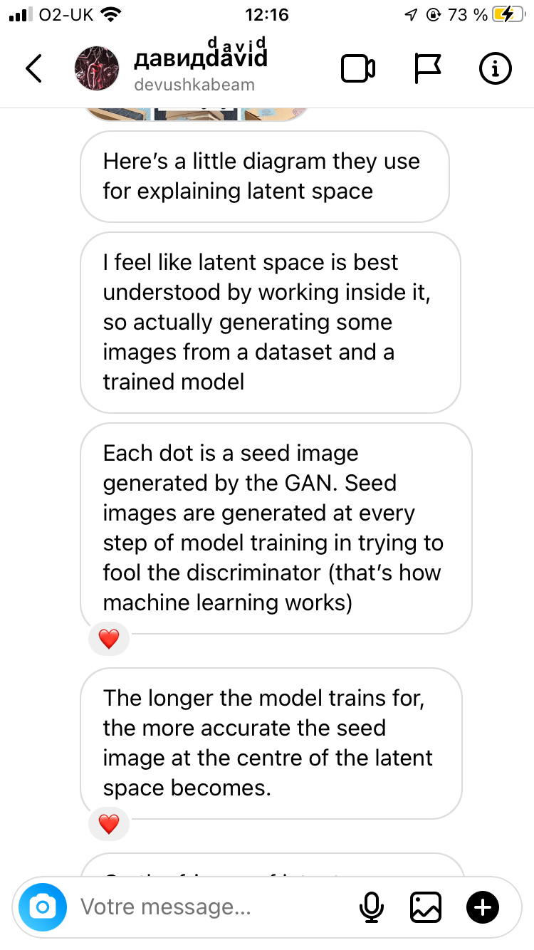 So in that Vox video about AI generated images, its like if i chucked a 🍌 and a 🪑and a 🦞 to a machine and was like “give me an image with all three, make it make sense” and it would make sense of it by categorising those objects based on features like colour, texture & lighting, all of which is happening in that multidimensional space. And as it is categorising all them objects, it generates points of data called “seeds” which are initial visualisations of said data points, which in turn are “critiqued” by the discriminator at every step of the machine being trained, & the longer it trains, the clearer & more accurate the image of my 🦞🪑🍌 becomes